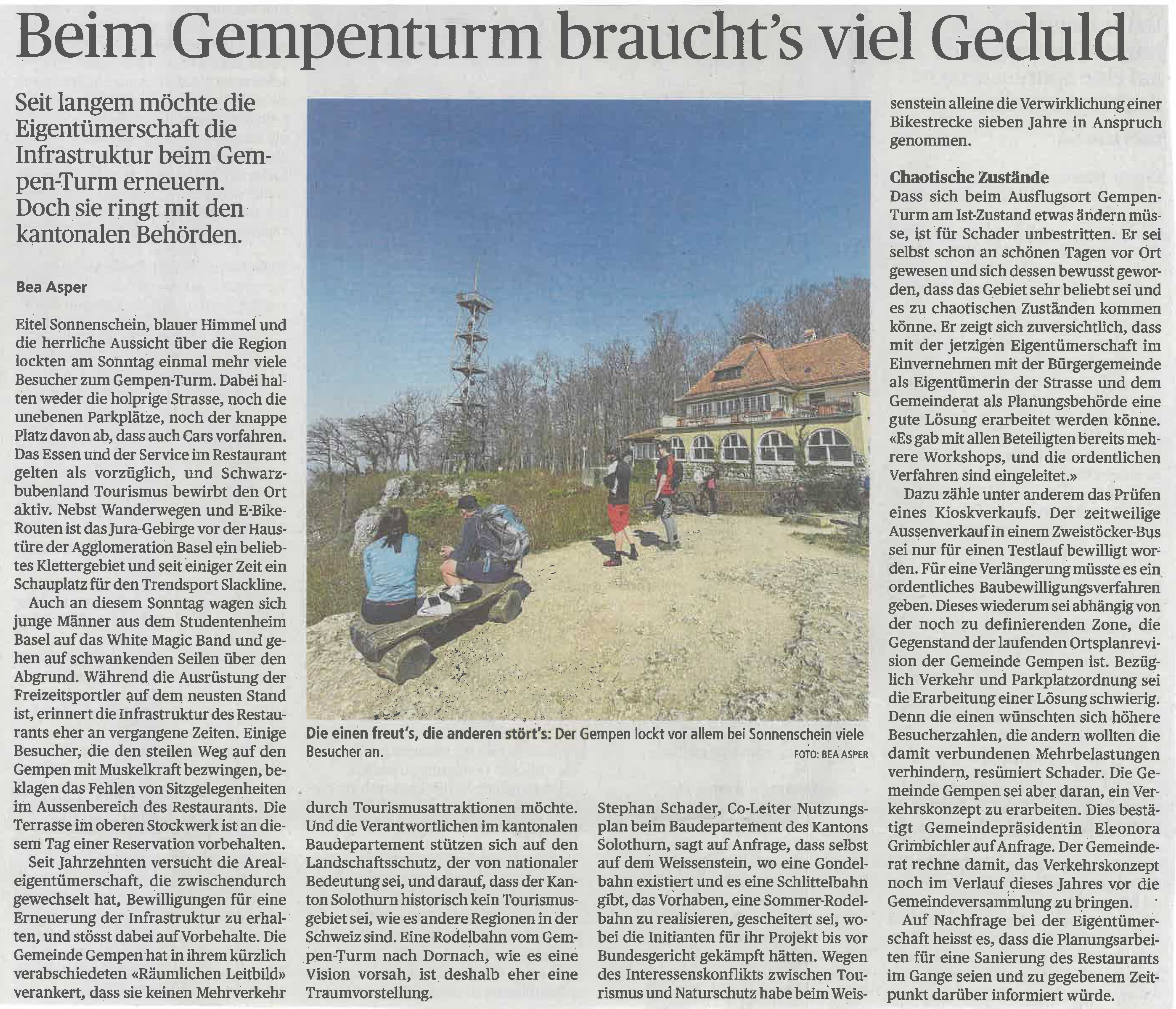 Presseartikel zum Thema Schartenfluh / Gempenturm