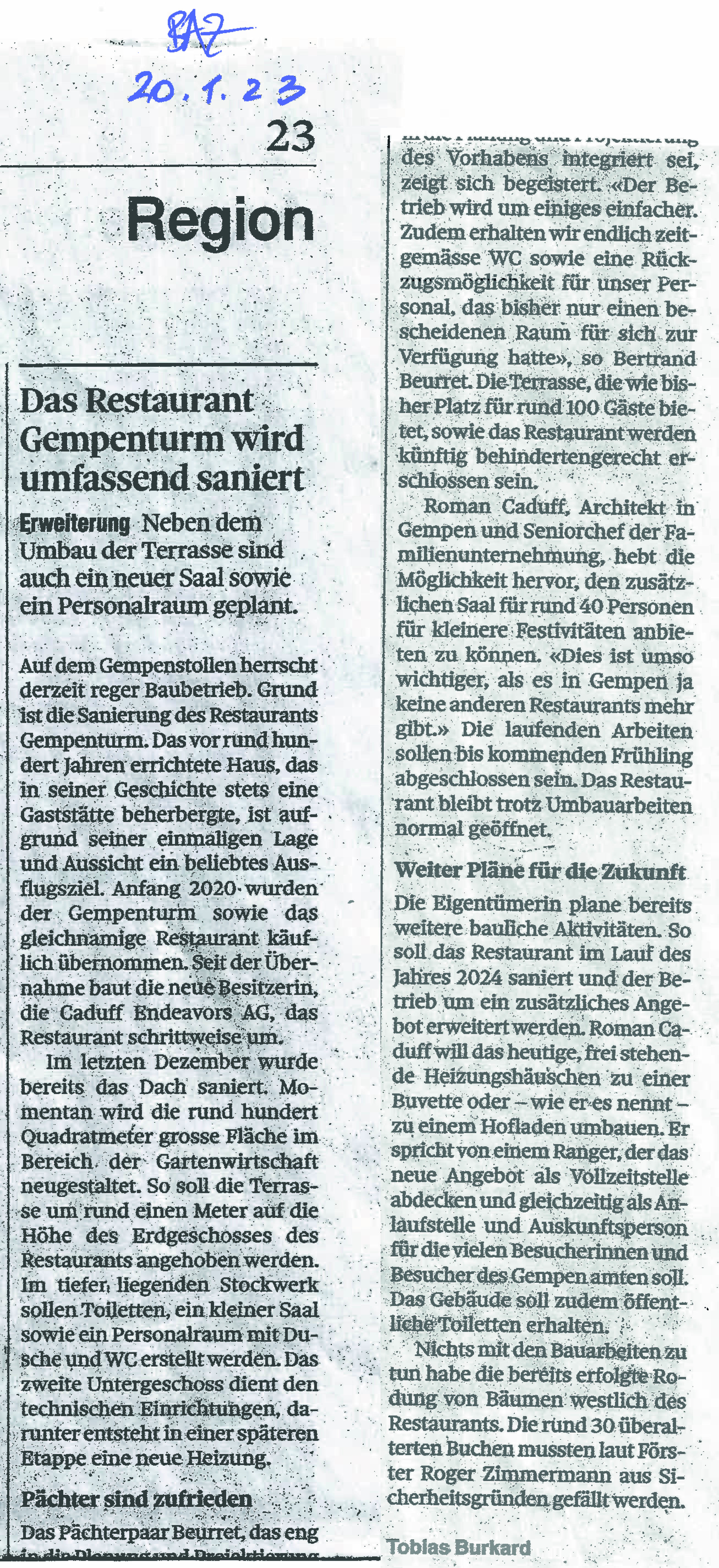 20.1.2023 | Das Restaurant Gempenturm wird umfassend saniert